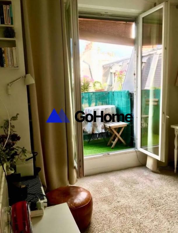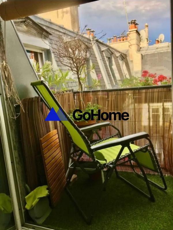 Ce logement offre un espace de vie lumineux avec un coin nuit aménagé autour d'un lit double et un bureau fonctionnel. La kitchenette est équipée d'un évier moderne et de rangements pratiques. La salle d'eau comprend une douche et des WC. Un balcon agréable prolonge la pièce principale, offrant une vue dégagée sur les toits de Paris, parfait pour profiter des beaux jours.