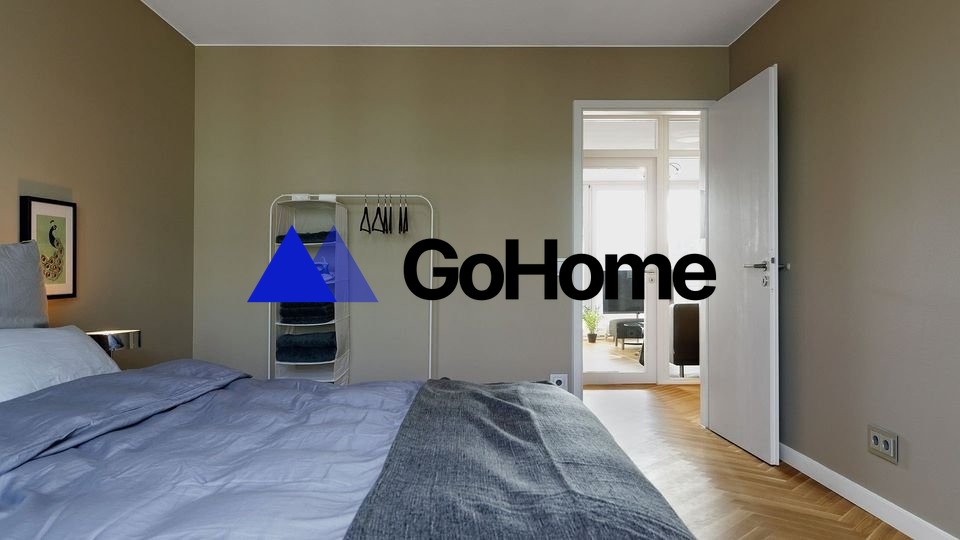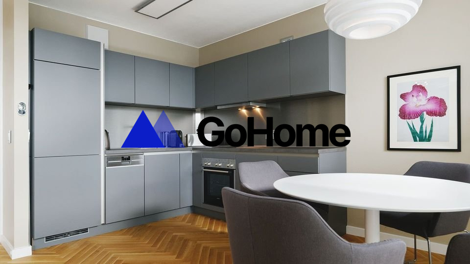 Le séjour, spacieux et lumineux, est aménagé avec un canapé et une table basse, s'ouvrant sur une cuisine moderne entièrement équipée de plaques, four, réfrigérateur et lave-vaisselle. La chambre, dotée d'un grand lit et d'un espace bureau, apporte confort et praticité. La salle d'eau contemporaine comprend une douche et des WC.