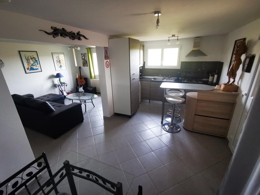 Cuisine équipée de 15 m2 ouverte sur salon et avec accès direct vers la terrasse et la piscine
